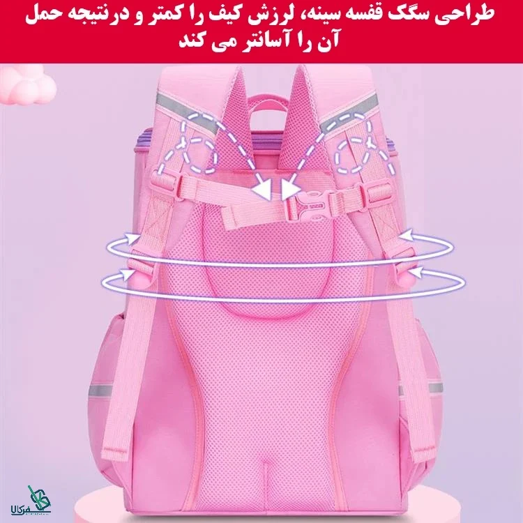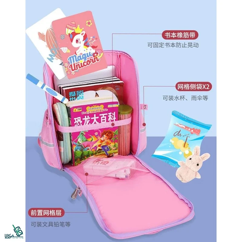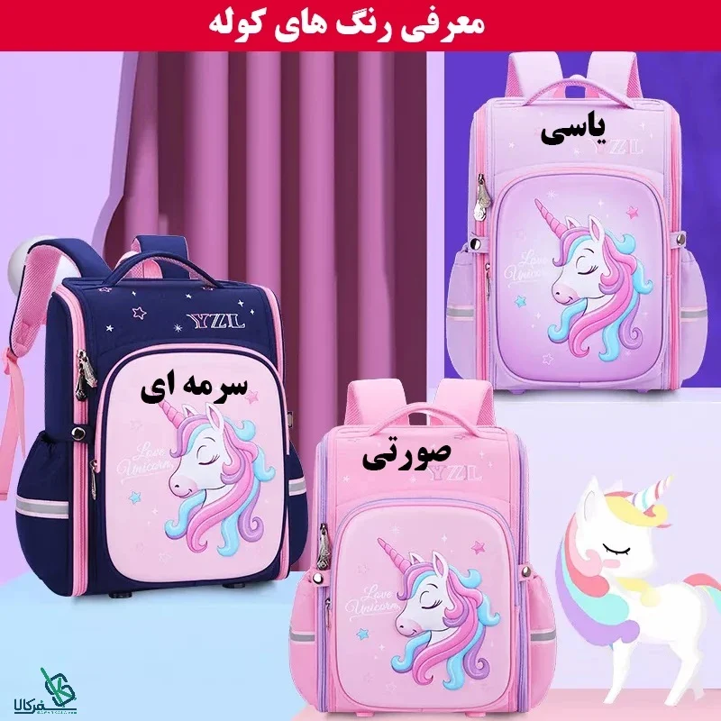 رنگبندی جذاب شامل صورتی، یاسی و سورمهای به همراه طرح یونیکورن محبوب، این کوله را به یکی از گزینههای پرطرفدار میان کولههای مدرسهای دخترانه تبدیل کرده است.